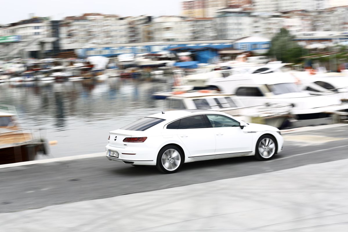 R-Line donanıma saihp olan 2.0 TDI motor 240 HP güç ve 500 Nm tork üretiyor. Hem motor gücü hem de tork anlamında oldukça etkileyici olan motor gücünü yere 7 ileri DSG yardımı ve 4Motion dört tekerlekten çekiş sistemiyle aktarıyor. İlk hareket anından itibaren kesintisiz sunulan gç sayesinde fabrika verisi 6.5 saniyede 0-100 km/s hızlanmasını tamamlayan Arteon spor otomobilleri kıskandıran bir performans sunuyor. Ara hızlanmalar konusunda da son derece iyi sonuçlar ortaya koyan Arteon tartışmasız performans anlamında dizel motoruna rağmen çok iyi bir otomobil.